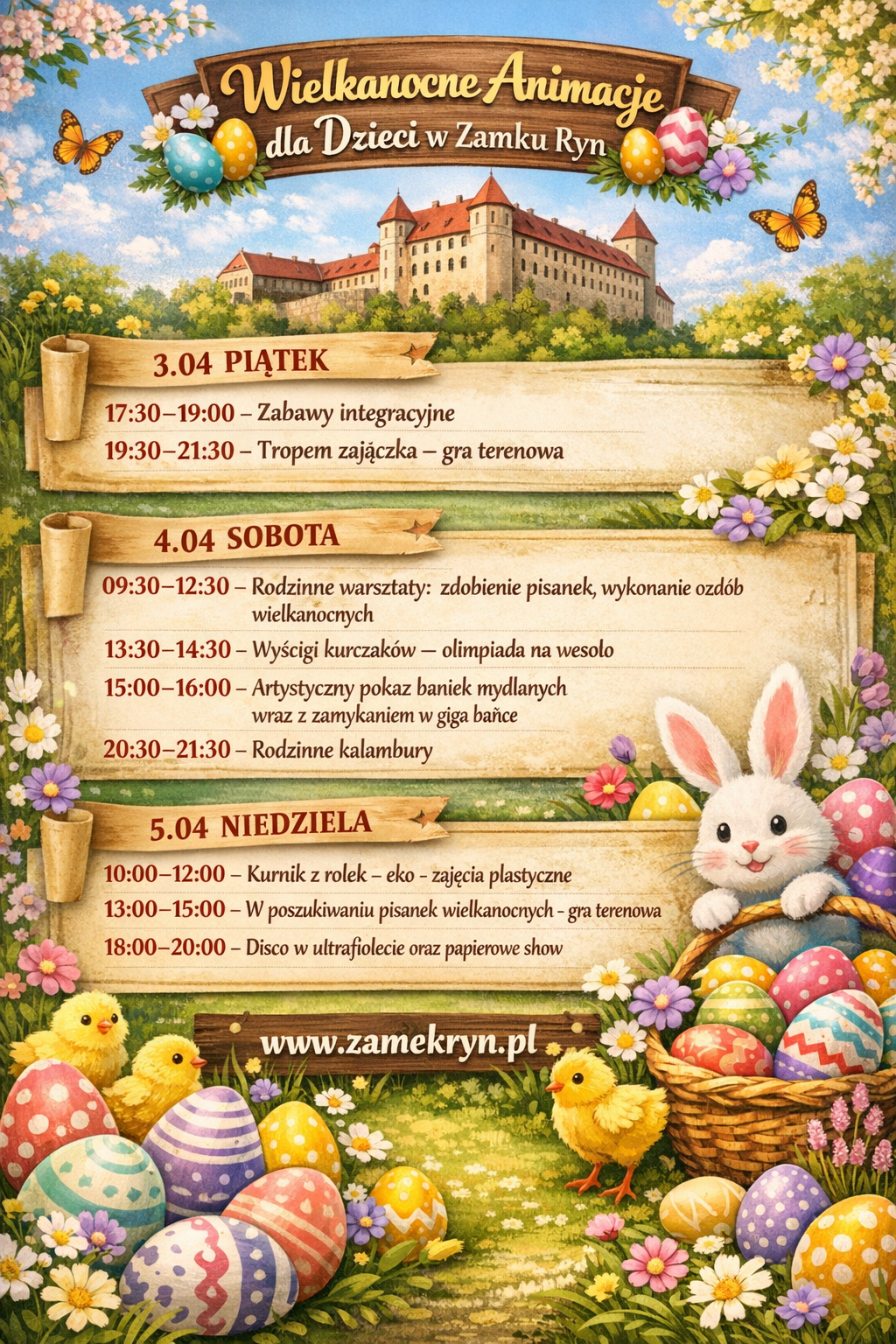 - Śniadania z aromatyczną kawą o poranku, w tym tradycyjne i rodzinne Śniadanie Wielkanocne na zamkowym Dziedzińcu z muzyką na żywo w wykonaniu gitarzysty Romana Tkaczyka (niedziela )